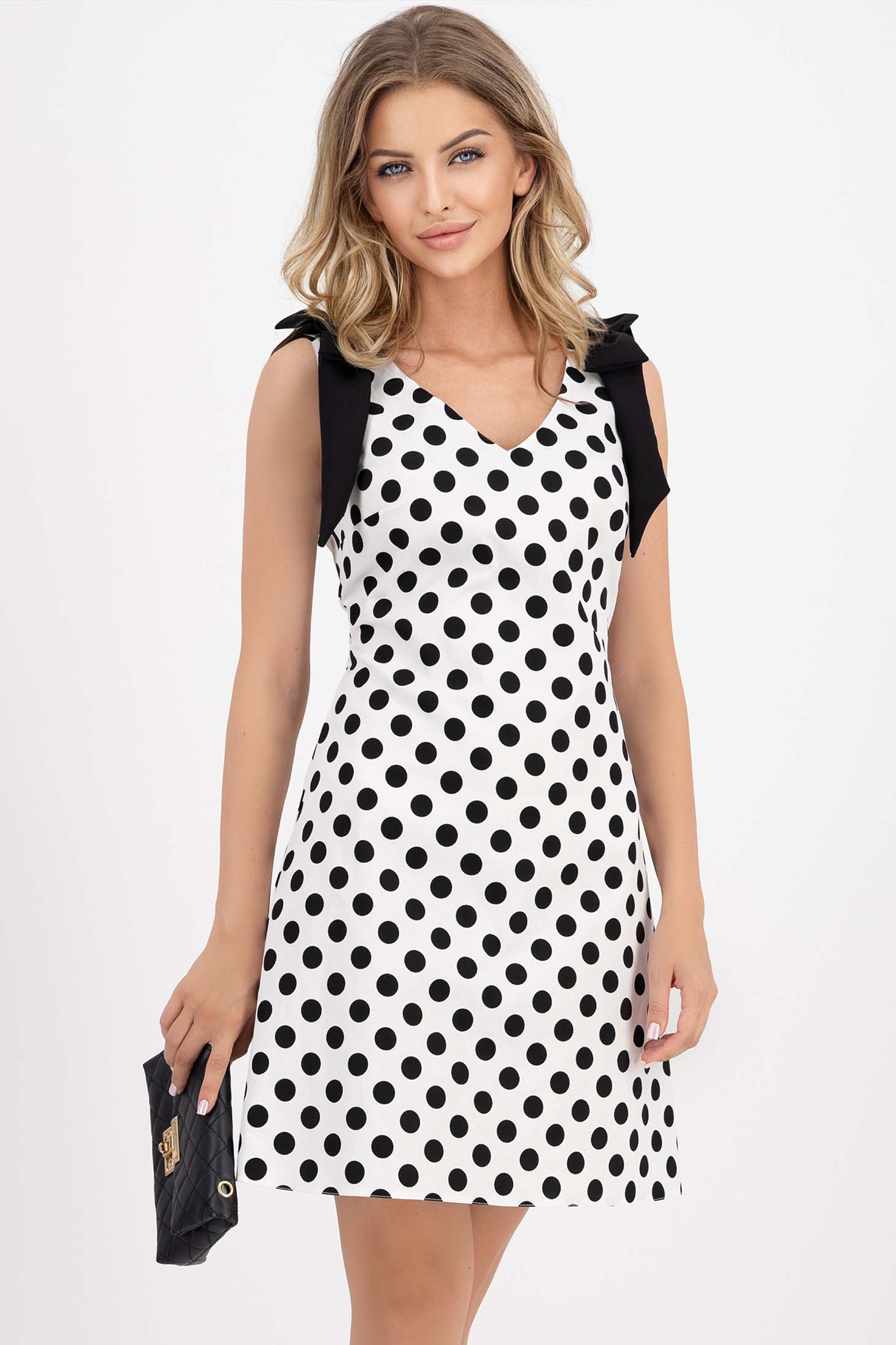 Boja slonovače haljina s točkicama izrađena od pamuka.Kroj je ravan i lagano se širi na dnu.