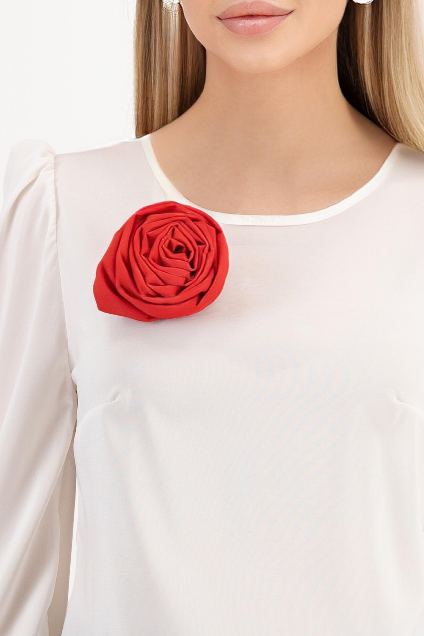 - Crvena maxi cvjetna broša u obliku ruže, izrađena od tankog, lagano elastičnog materijala. Pričvršćuje se zatvaračem.